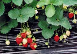 休眠の深さや必要度は育種により克服し、休眠打破や花芽分化の促進法も進歩しました。これらにより促成栽培技術は著しく発展しました。また、抑制栽培も株の冷蔵などで著しく進歩しました。夏栽培は今のところ輸入品の天下です。5、6月の高温期の普通栽培は、残念ながら梅雨や気温の関係で産地が壊滅しました。収穫期のビニールトンネルで病害・腐敗は免れます。トンネルだけでも栽培環境は大違いとなります。幅をきかす促成産地は、東の栃木、西の福岡、佐賀、長崎。あと静岡・愛知・茨城、寒地では岩手が頑張っています。
