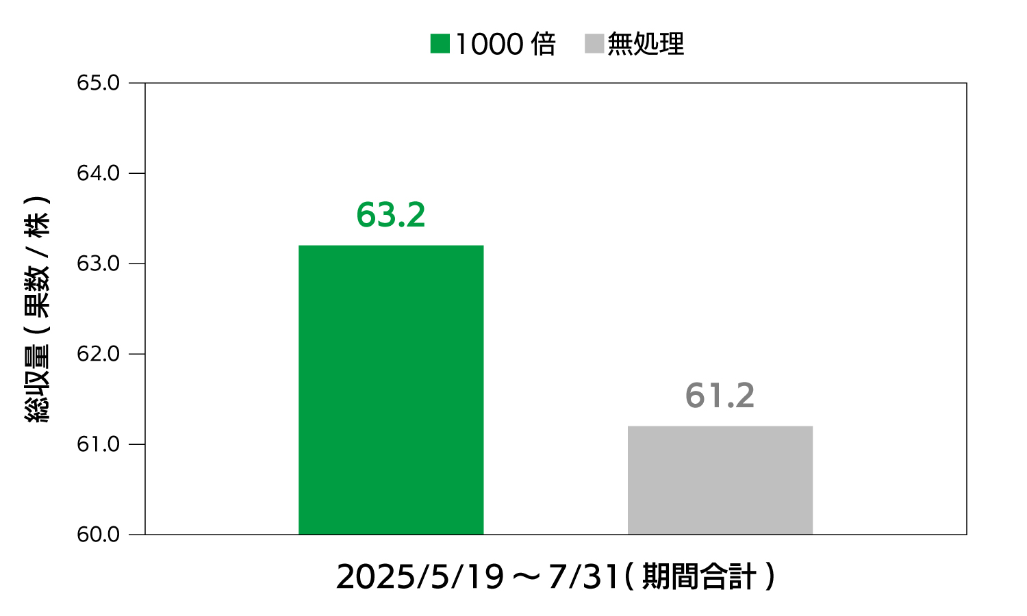 | 調査法: | 目視確認で商品性のない果実を除いた計10株の総収穫重量を調査 |